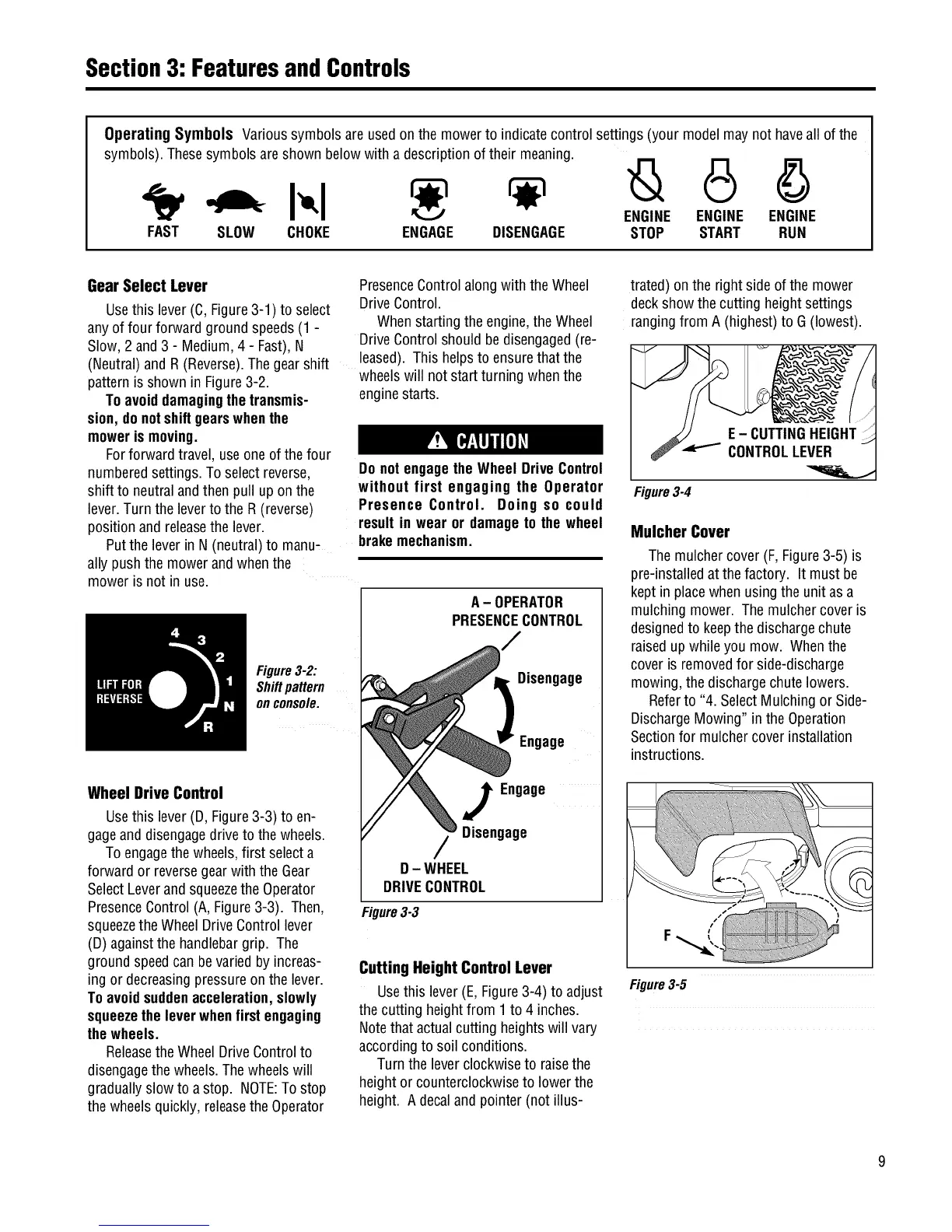 Operating Symbols Varioussymbolsare usedon the mowerto indicatecontrol settings (your modelmay not haveall of the