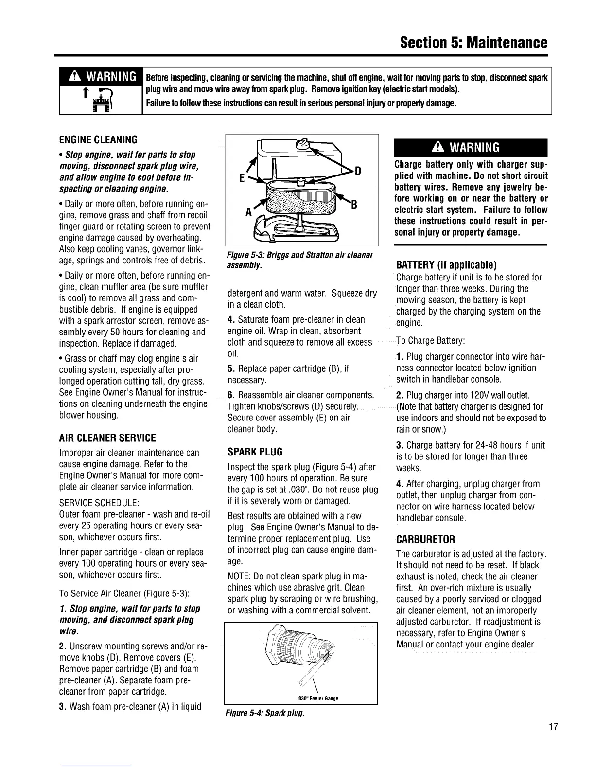 W!_LW:I-'t_II_[_I Beforeinspecting,cleaningorservicingthemachine,shutoffengine,waitformovingpartstostop,disconnectspark
