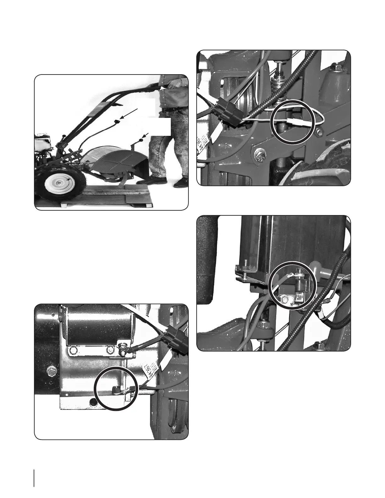 1. Ground the green (and red for electric start tillers) wire(s) to