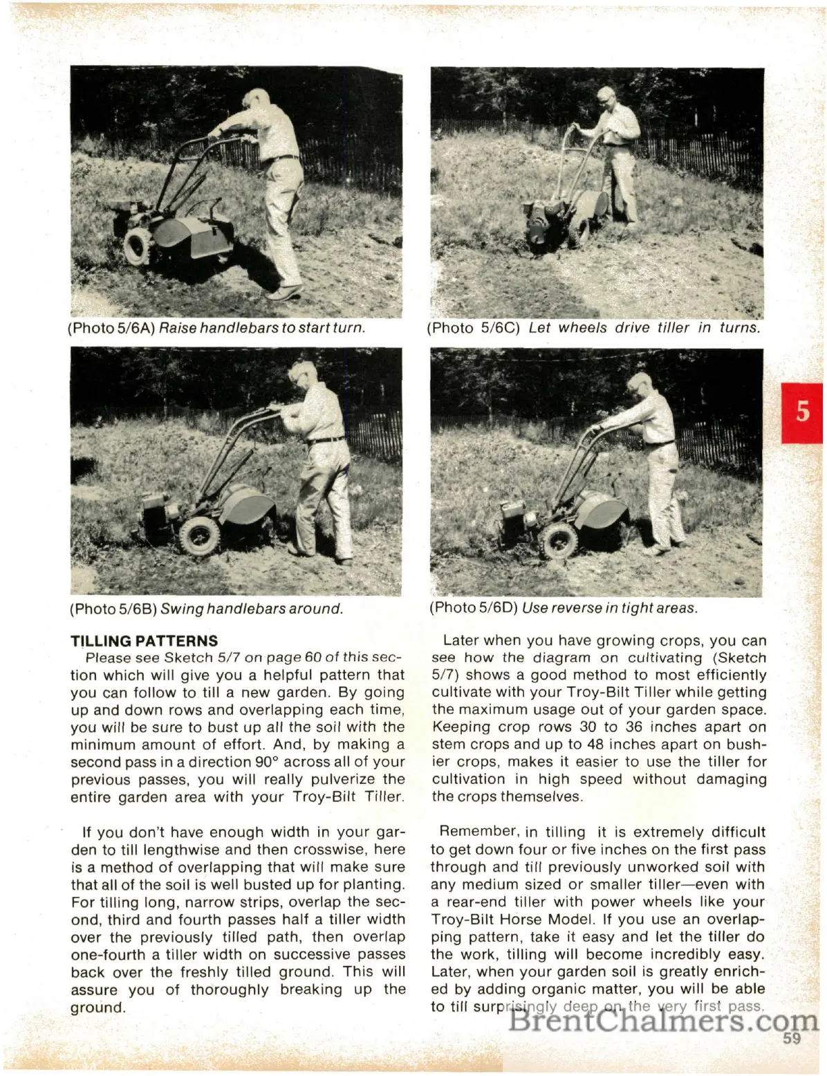 Troy-Bilt Horse - Tilling Patterns; Raise Handlebars to Start Turn; Swing Handlebars Around; Let Wheels Drive Tiller in Turns