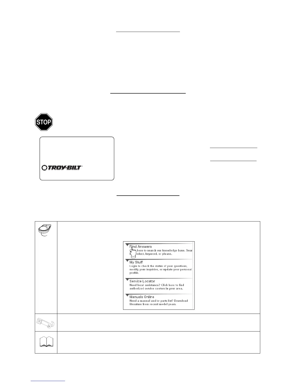 Visit troybilt.com for many useful suggestions. Click on Customer Support button and you will