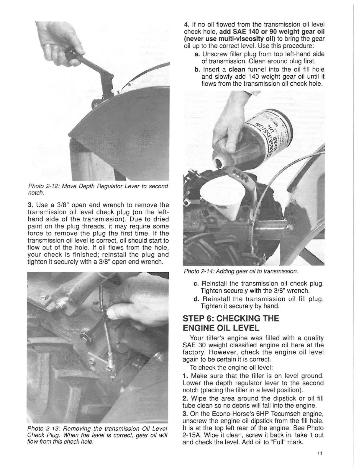 1. Make sure that the tiller is on level ground.