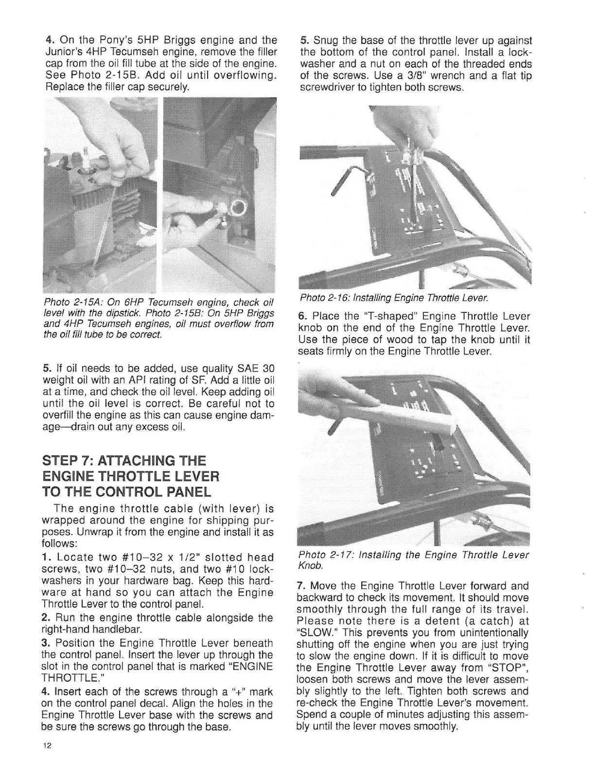 level with the dipstick. Photo 2-15B: On 5HP Briggs