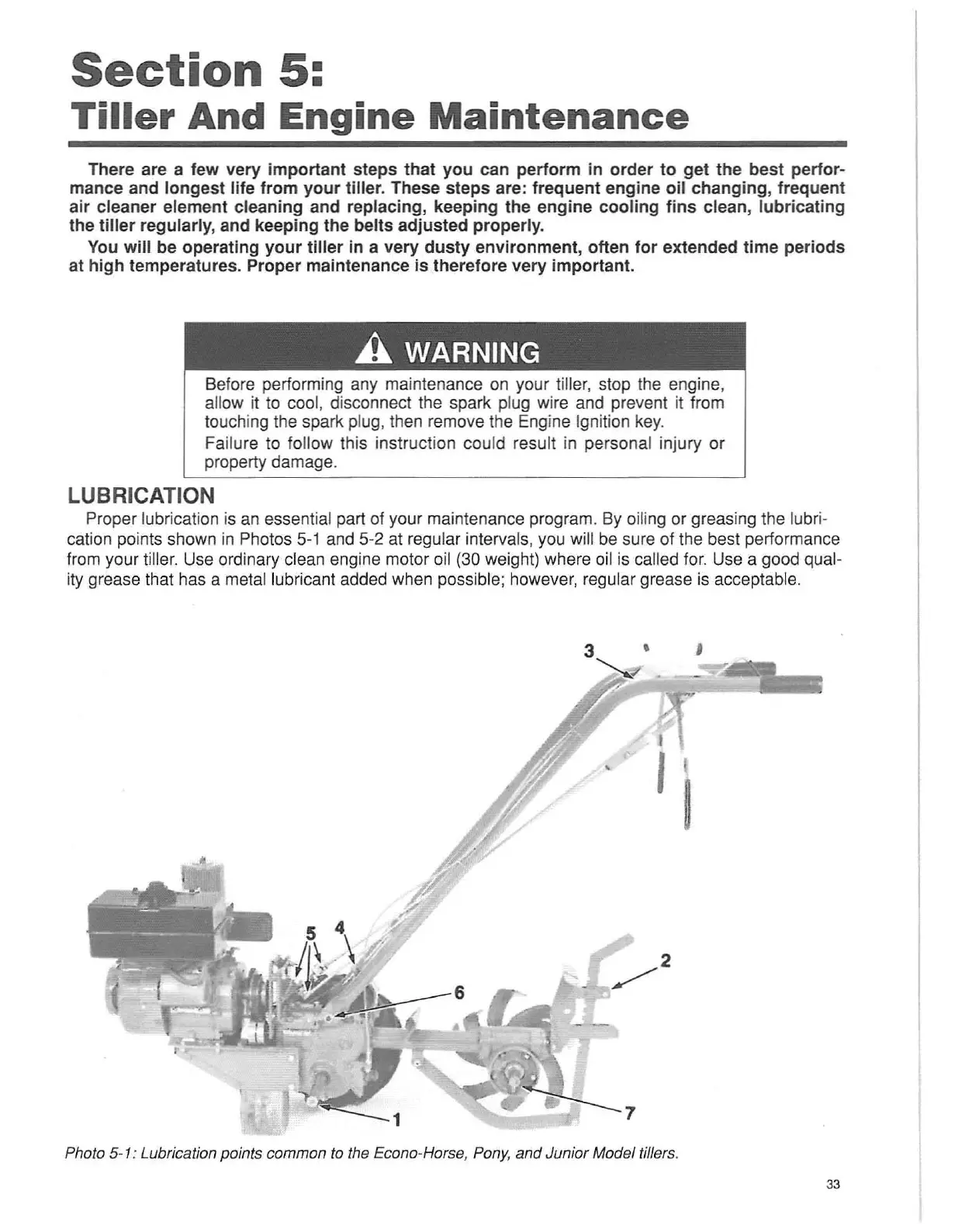 Photo 5-1: Lubrication points common to the Econo-Horse, Pony,