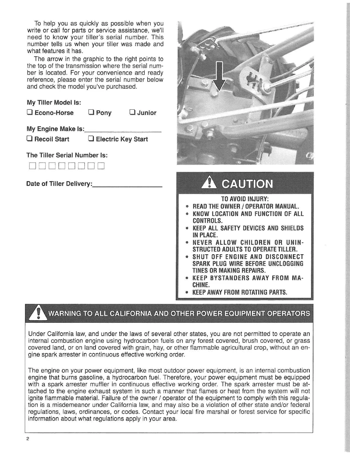 AWARNING TO ALL CALIFORNIA AND OTHER POWER EQUIPMENT OPERATORS