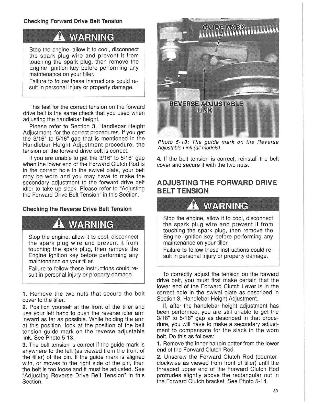 "Adjusting Reverse Drive Belt Tension" in this