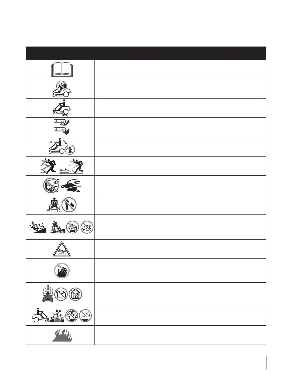 menos que se encuentre instalada(o) en su lugar la cubierta de descarga o el colector de pasto. Si alguna