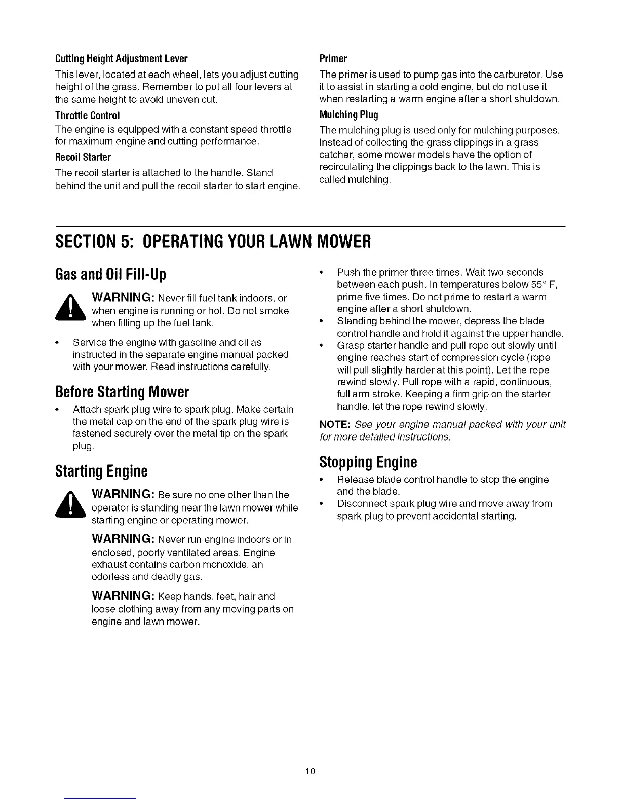 SECTION5: OPERATINGYOURLAWNMOWER