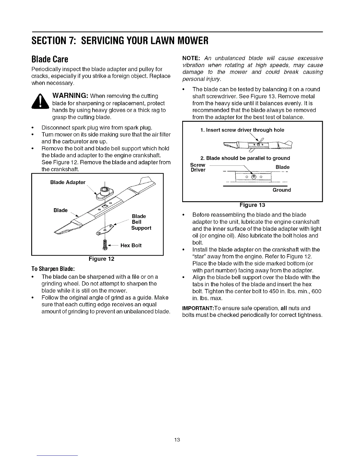 NOTE: An unbalanced blade will cause excessive