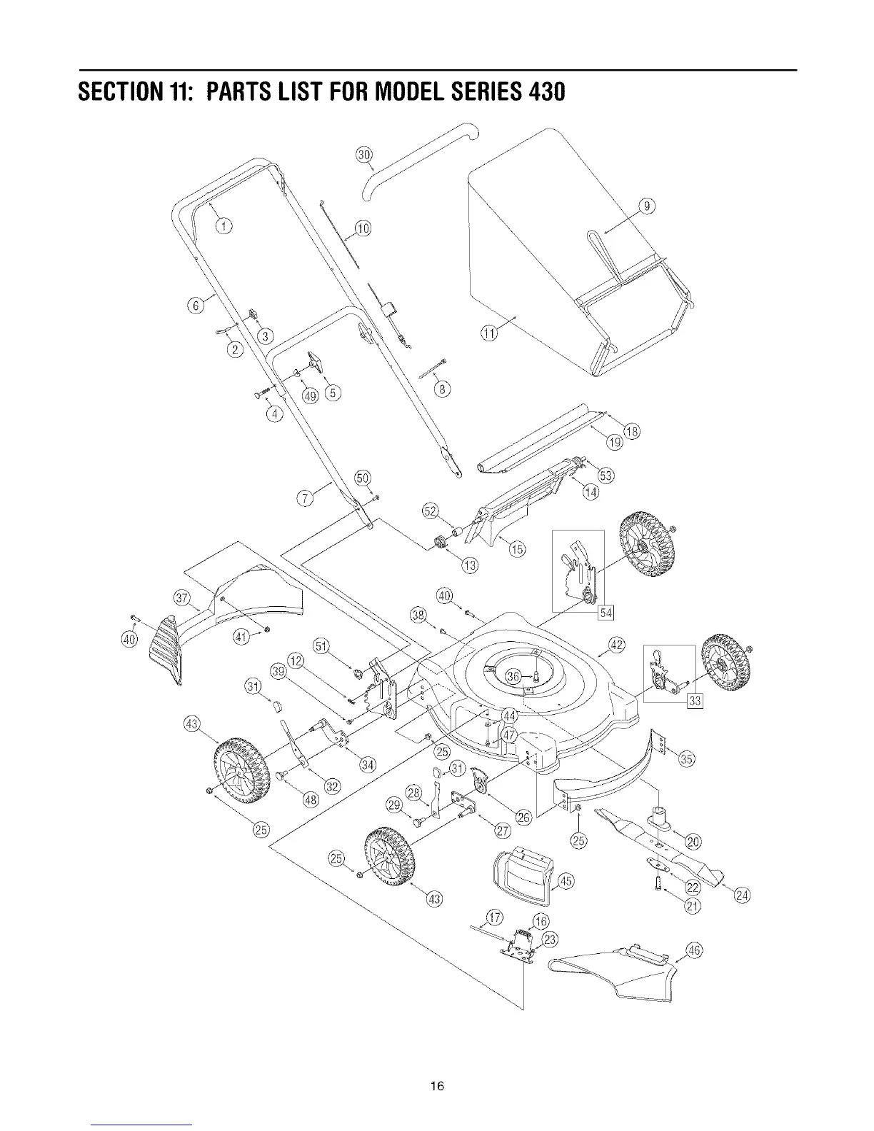 Troy-Bilt series 430 - Section 11: Parts List for Model Series 430
