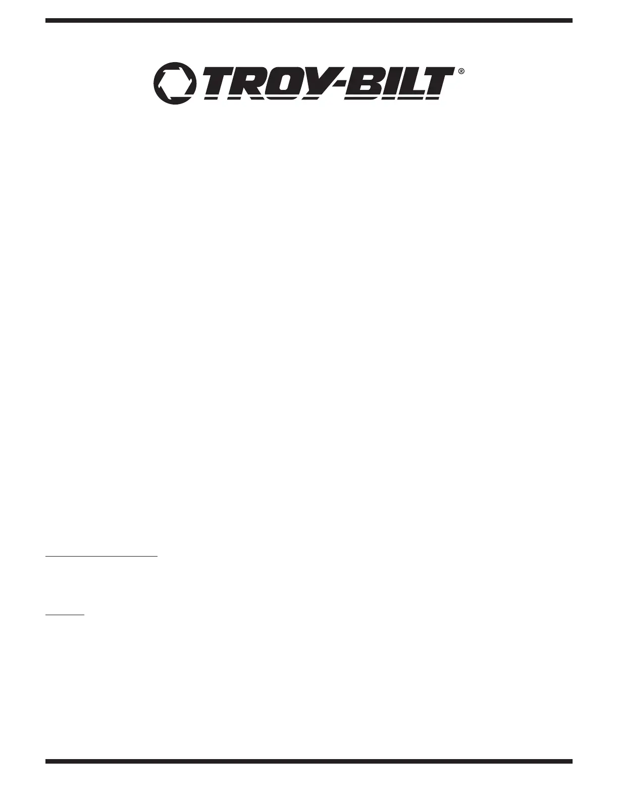 Troy-Bilt LLC, P.O. BOX 361131 CLEVELAND, OHIO 44136-0019, Teléfono: 1-866-840-6483,