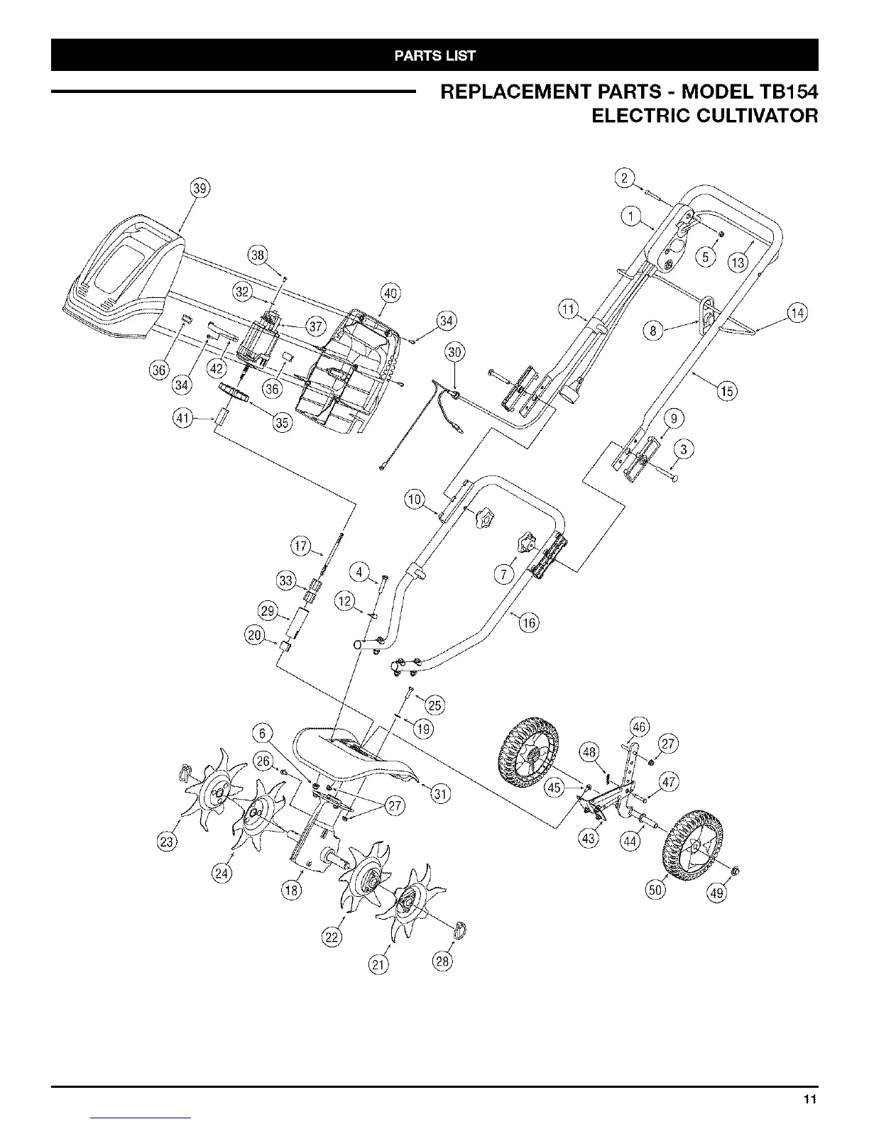 REPLACEMENT PARTS - MODEL TB154