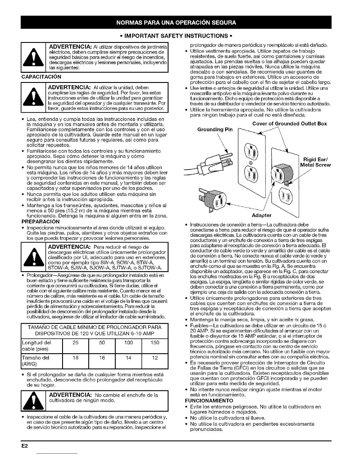 • Ins_rucciones de conexi6n atierra--La cultivadora debe