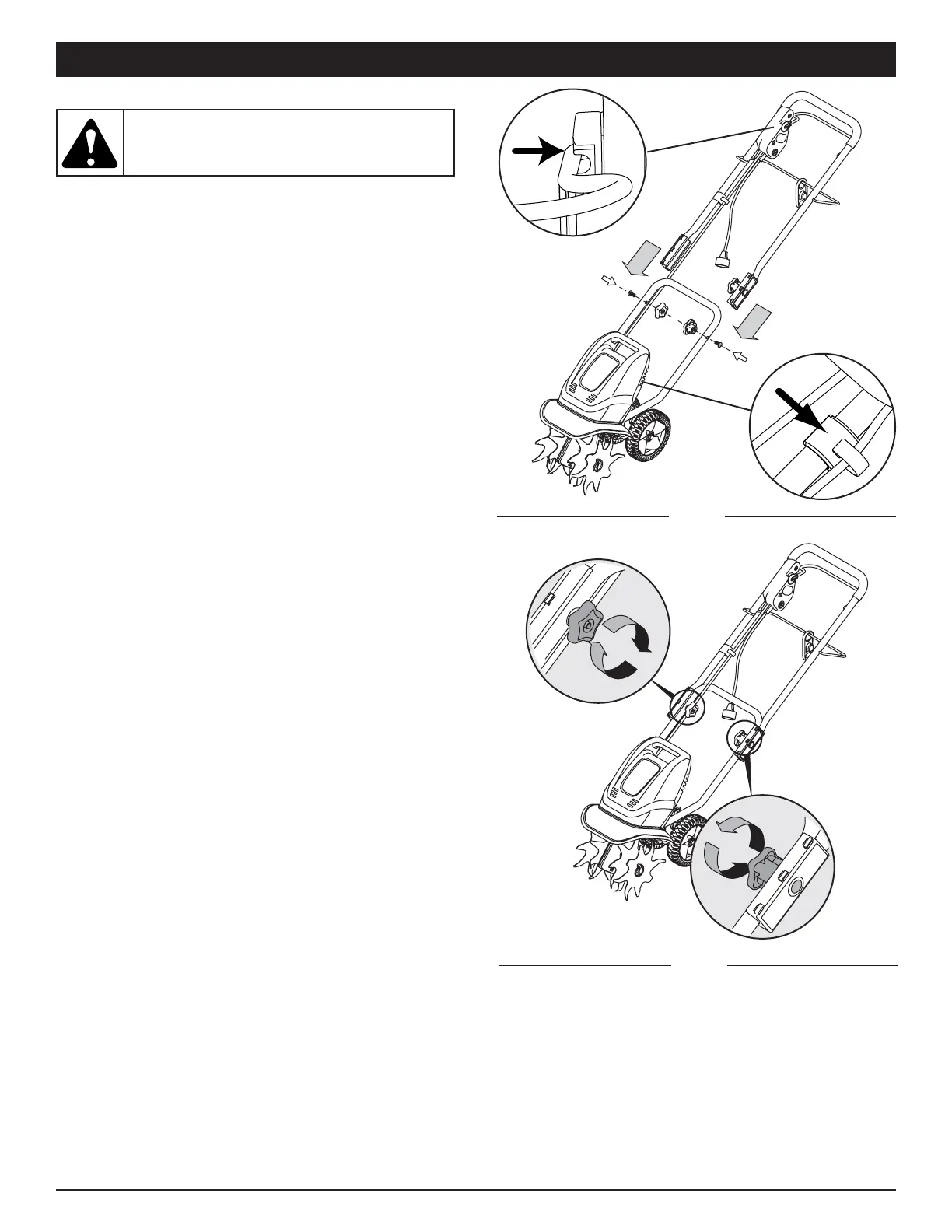 4. Apriete las perillas para fijar las manijas en su lugar.