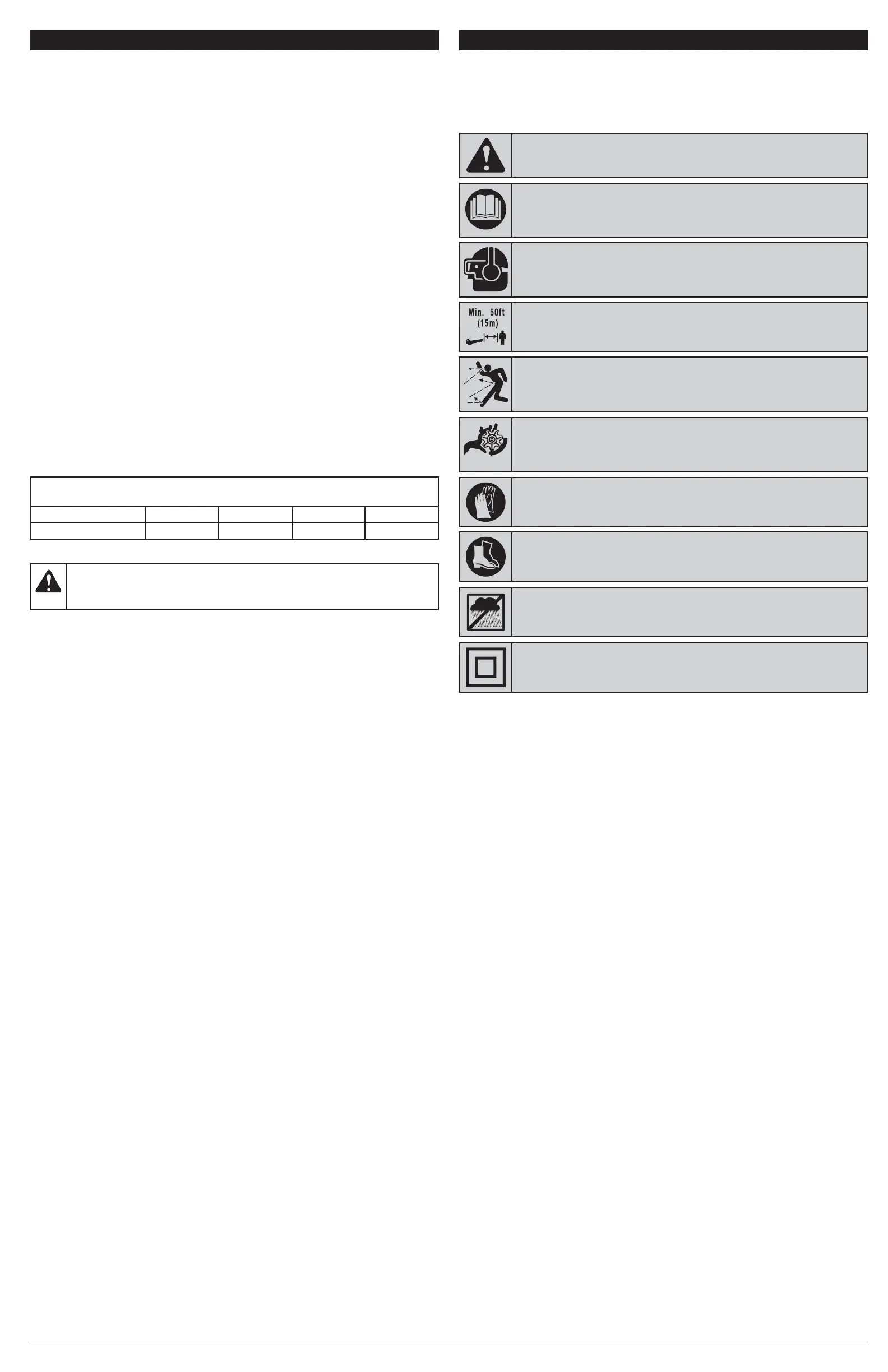 WARNING:Keep all bystanders, especially children and pets, at least 50