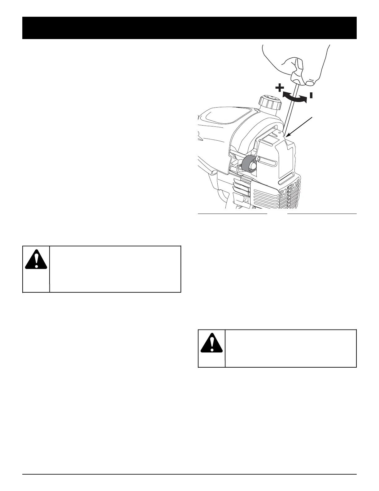 du filtre à air avant de régler la vis de réglage de ralenti. Voir