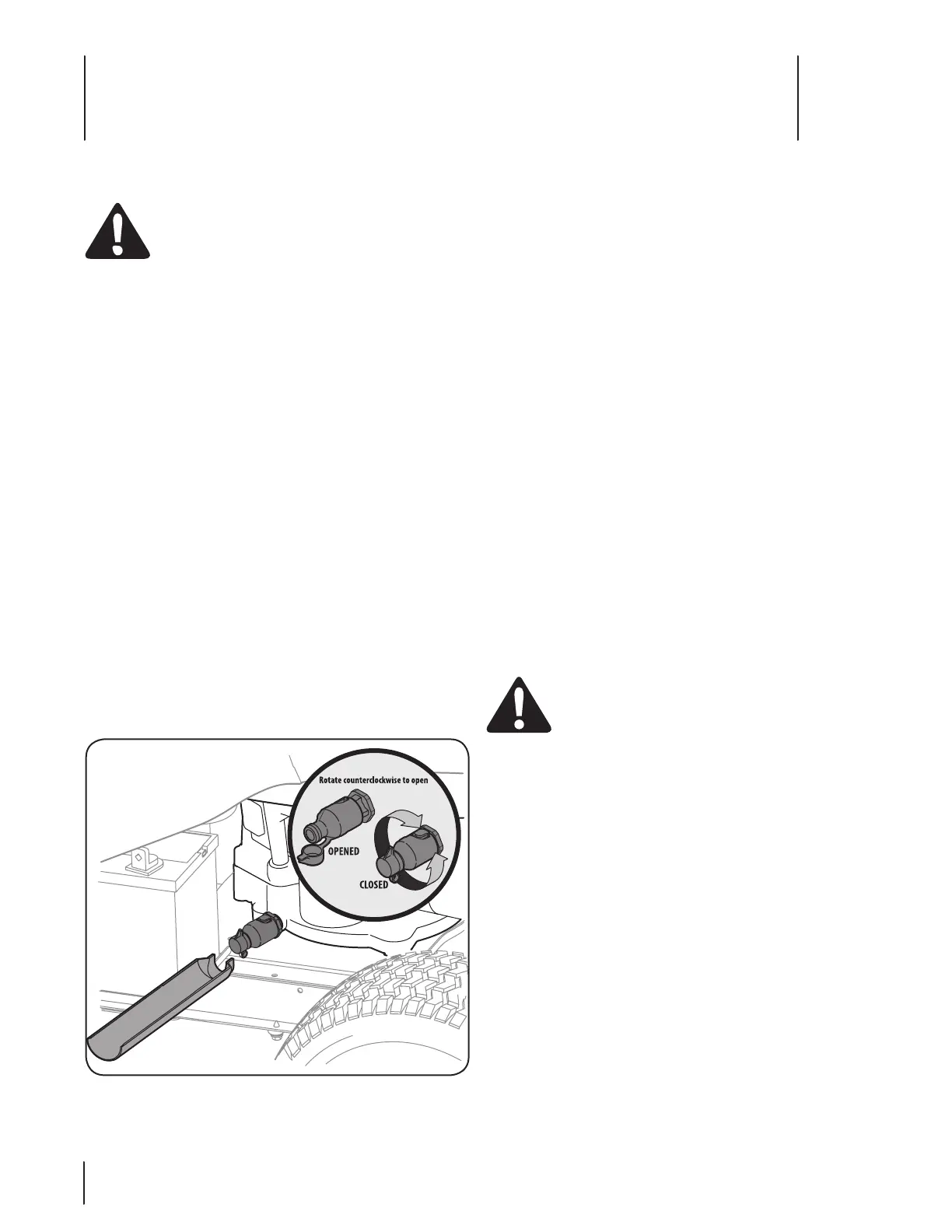 6. Gire la válvula de drenaje hacia la izquierda para abrir la