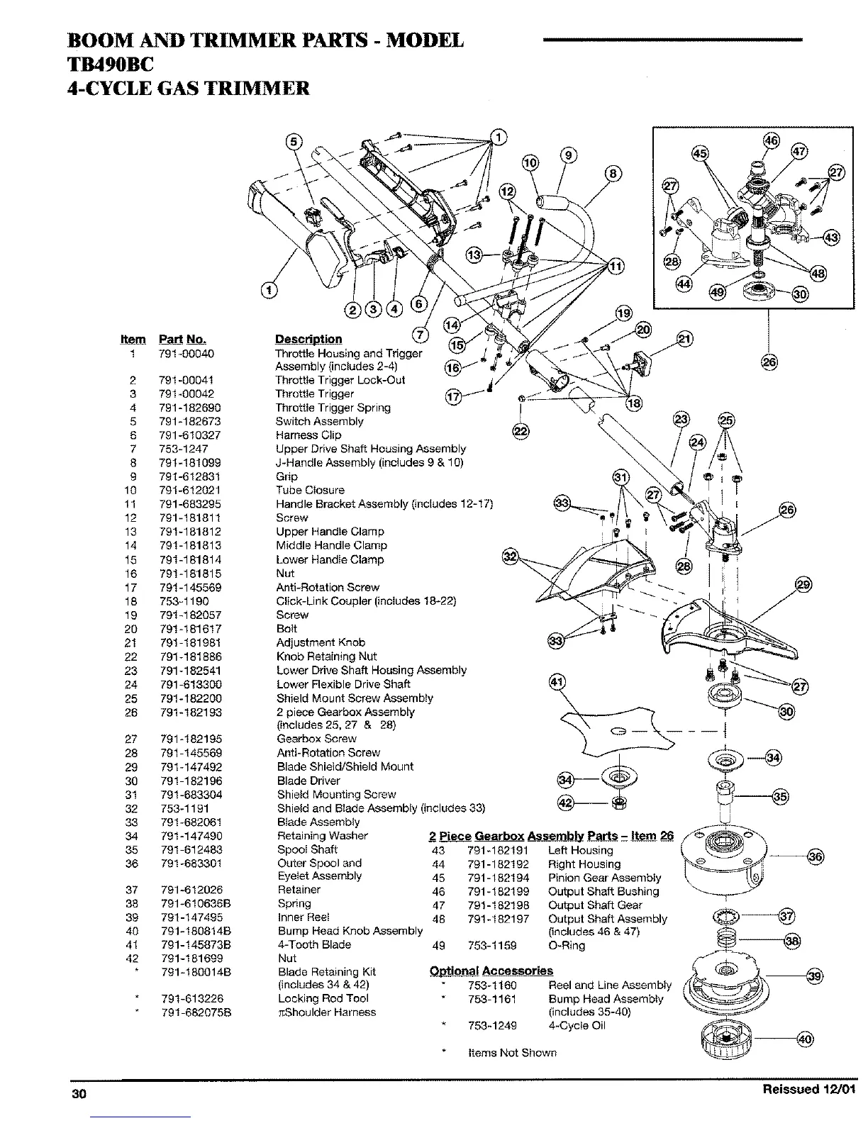BOOM AND TRIMMER PARTS - MODEL