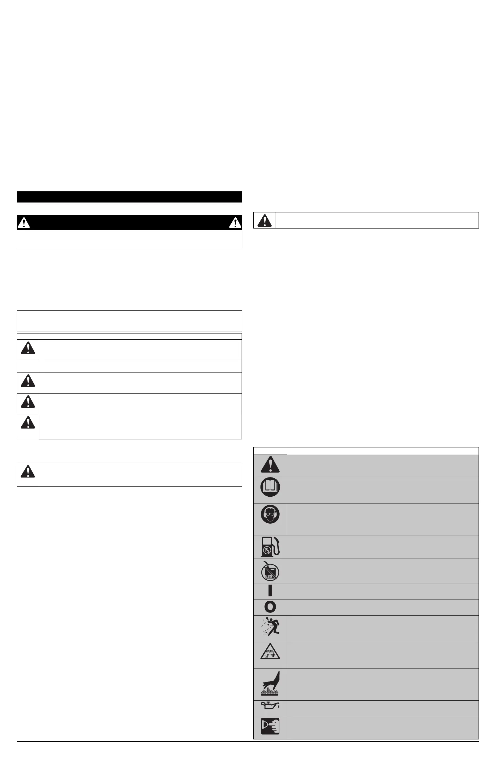 • Nunca arranque ni opere la unidad dentro de una habitación o edifi cio cerrado. Respirar los vapores