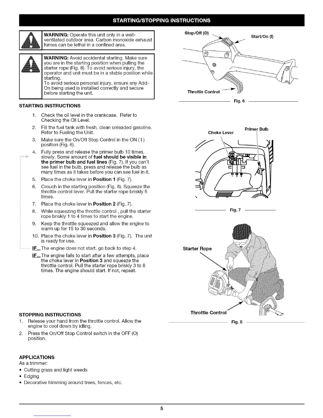 starter rope (Fig. 8). To avoid serious injuw, the
