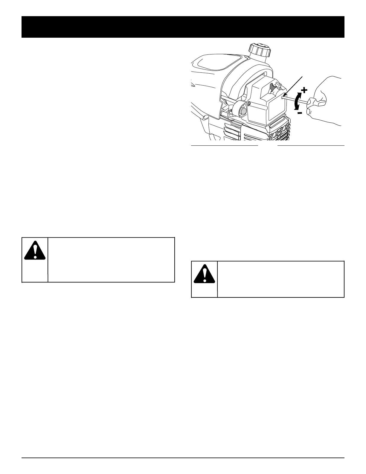 du filtre à air avant de régler la vis de réglage de ralenti. Voir