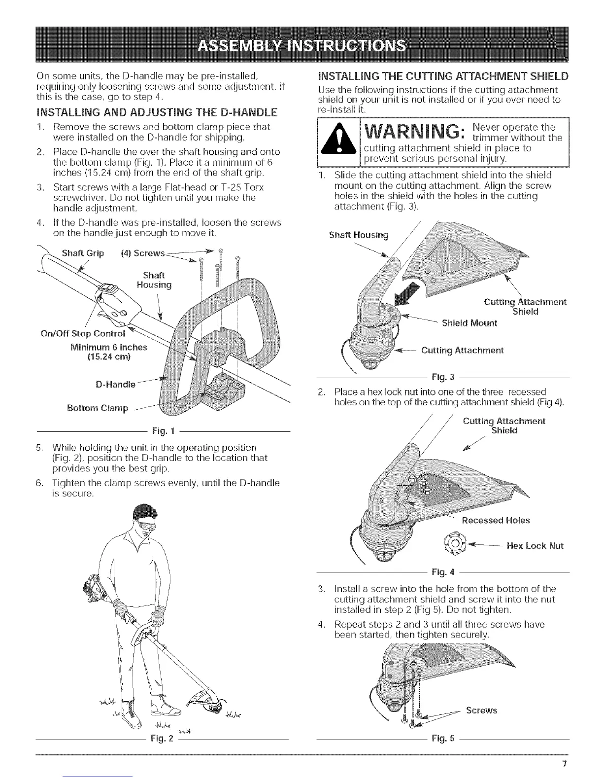 holes on the top of the cutting attachment shield (Fig 4).