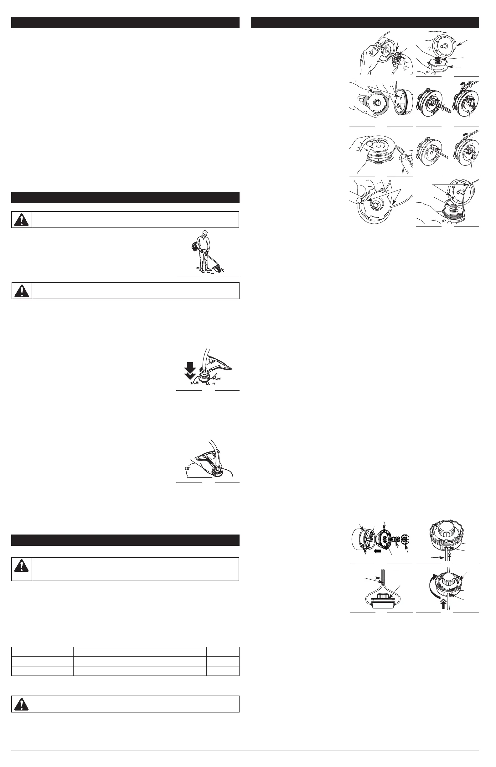 • Ne forcez pas l'accessoire. Coupez avec la pointe du fil (surtout le long des murs). Utiliser plus que la pointe
