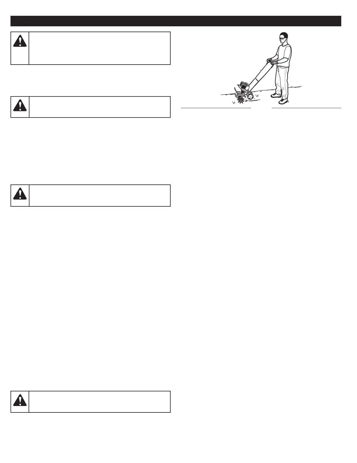 2. Incline la unidad hacia atrás hasta que las púas desmalezan la tierra.