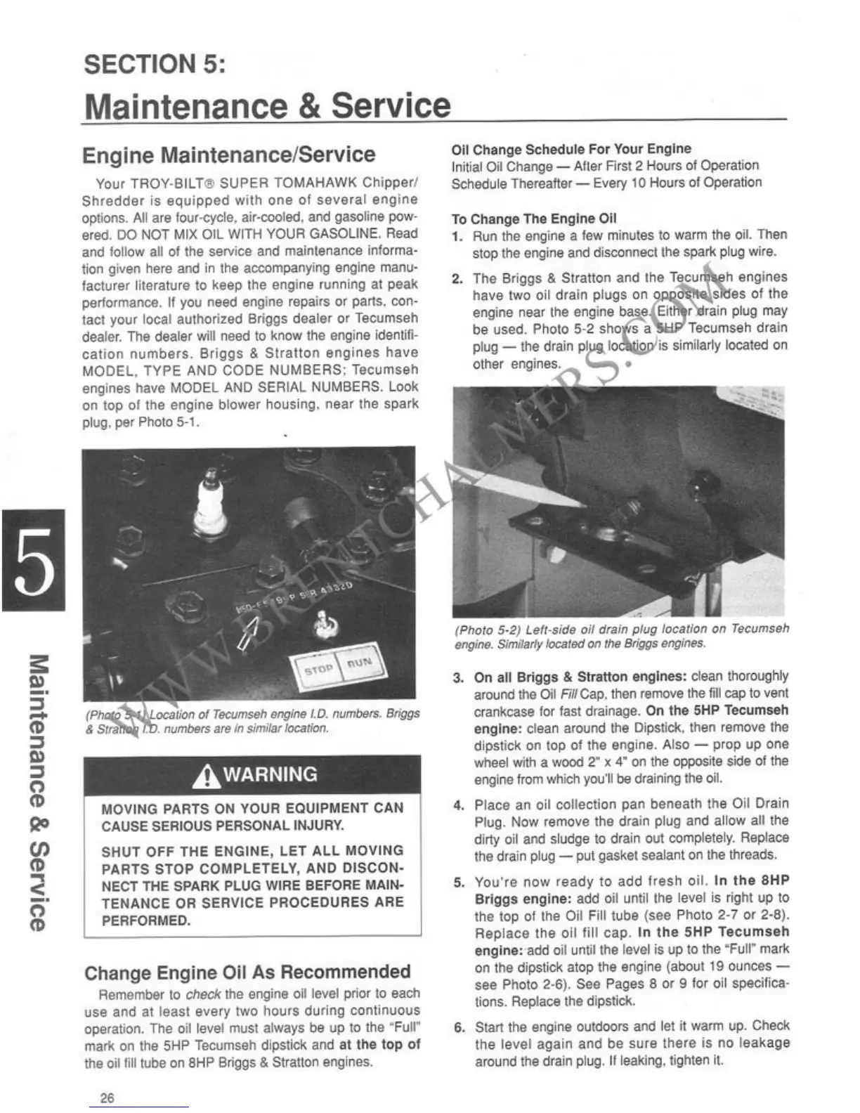 Troy-Bilt Tomahawk 47265 - Maintenance & Service; Engine Maintenance;Service
