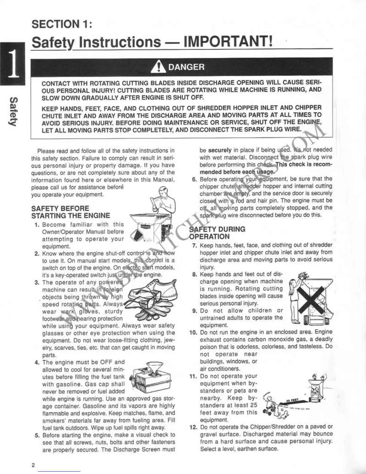 Troy-Bilt Tomahawk 47265 - Safety Instructions; Safety Before Starting the Engine; Safety During Operation