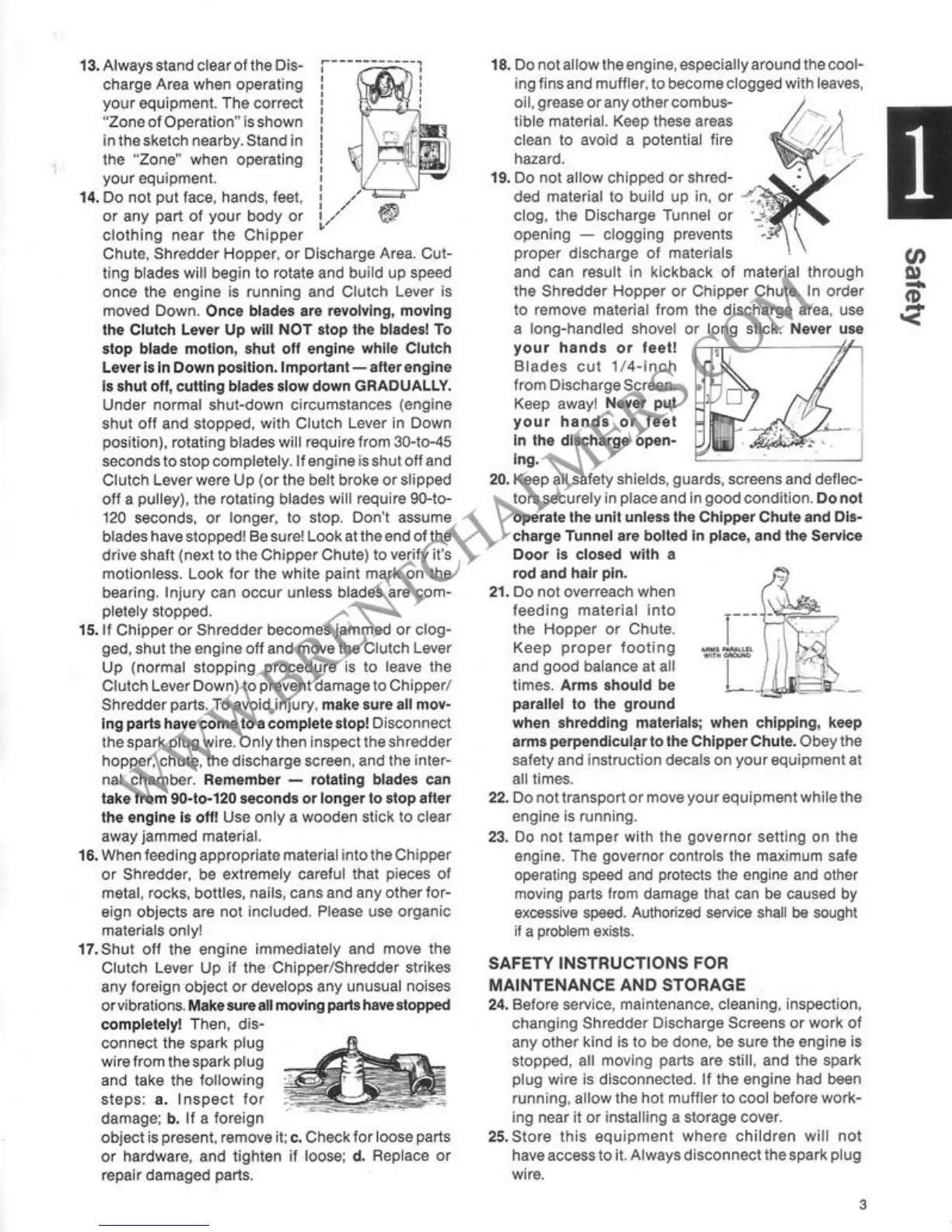 Troy-Bilt Tomahawk 47265 - Safety Instructions for Maintenance and Storage