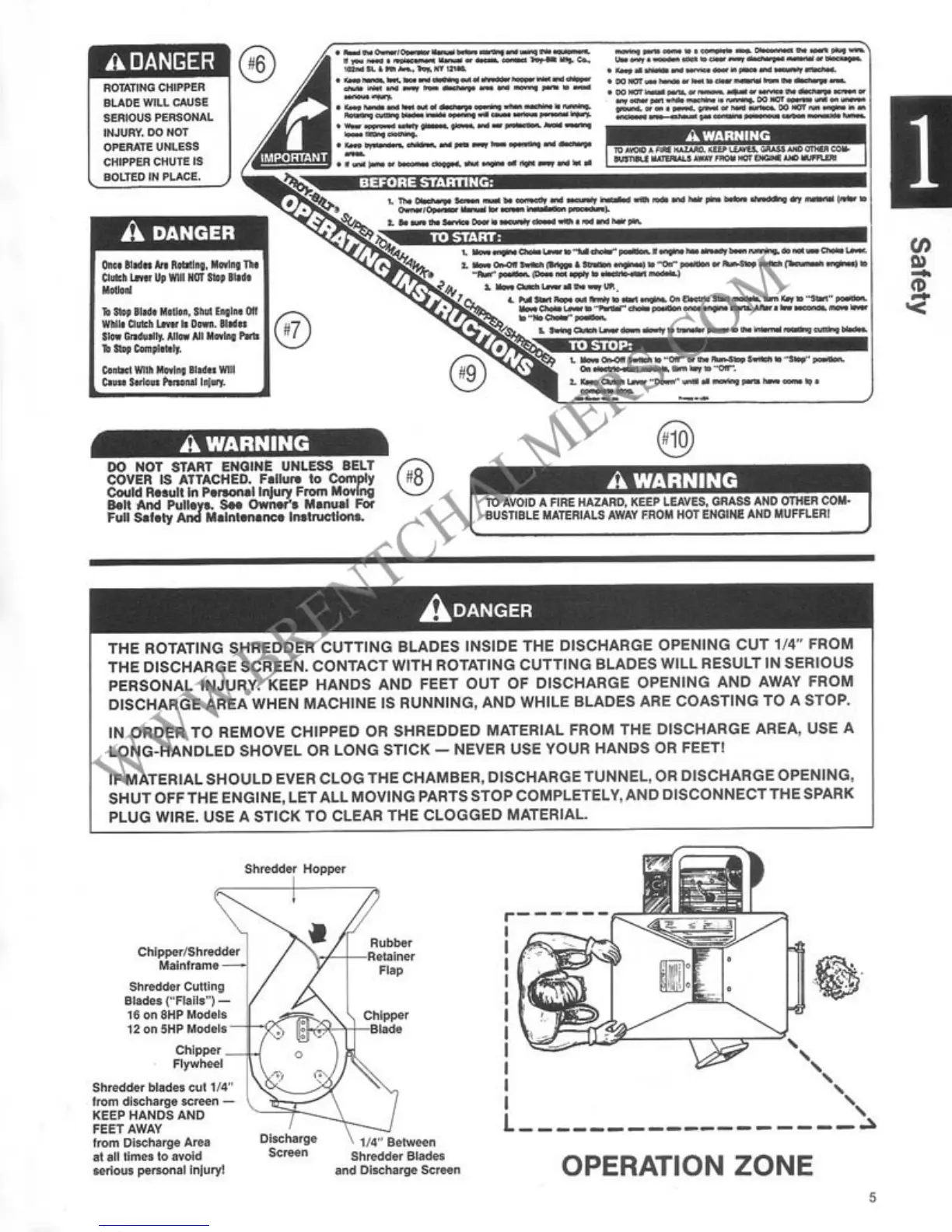 Troy-Bilt Tomahawk 47265 - Operation Zone