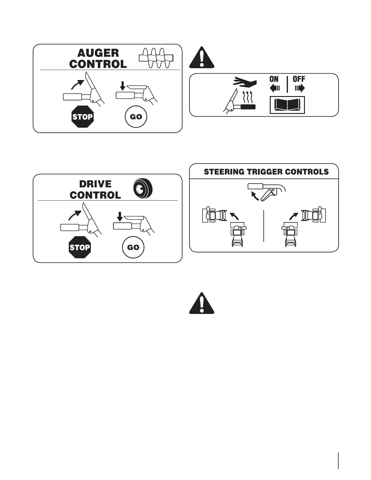 engaged. Release both controls to stop the augers and wheel