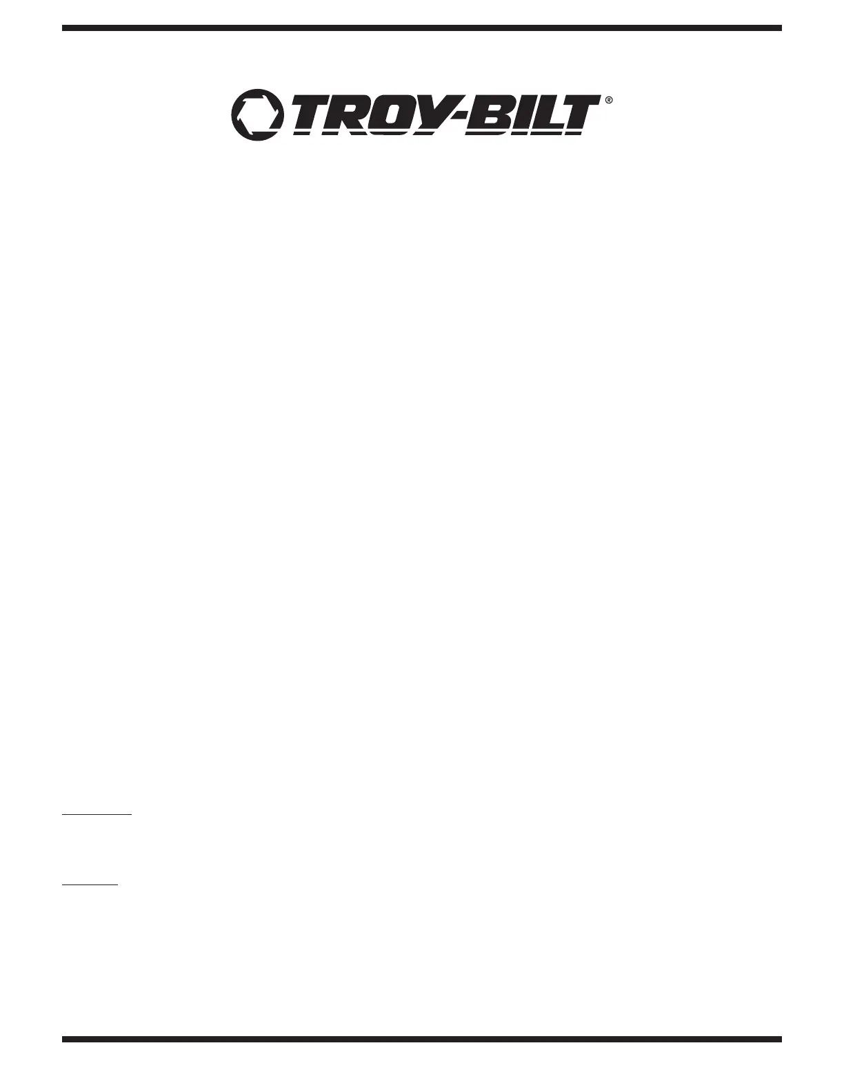 Troy-Bilt LLC, P.O. BOX 361131 CLEVELAND, OHIO 44136-0019; Phone: 1-866-840-6483, 1-330-558-7220