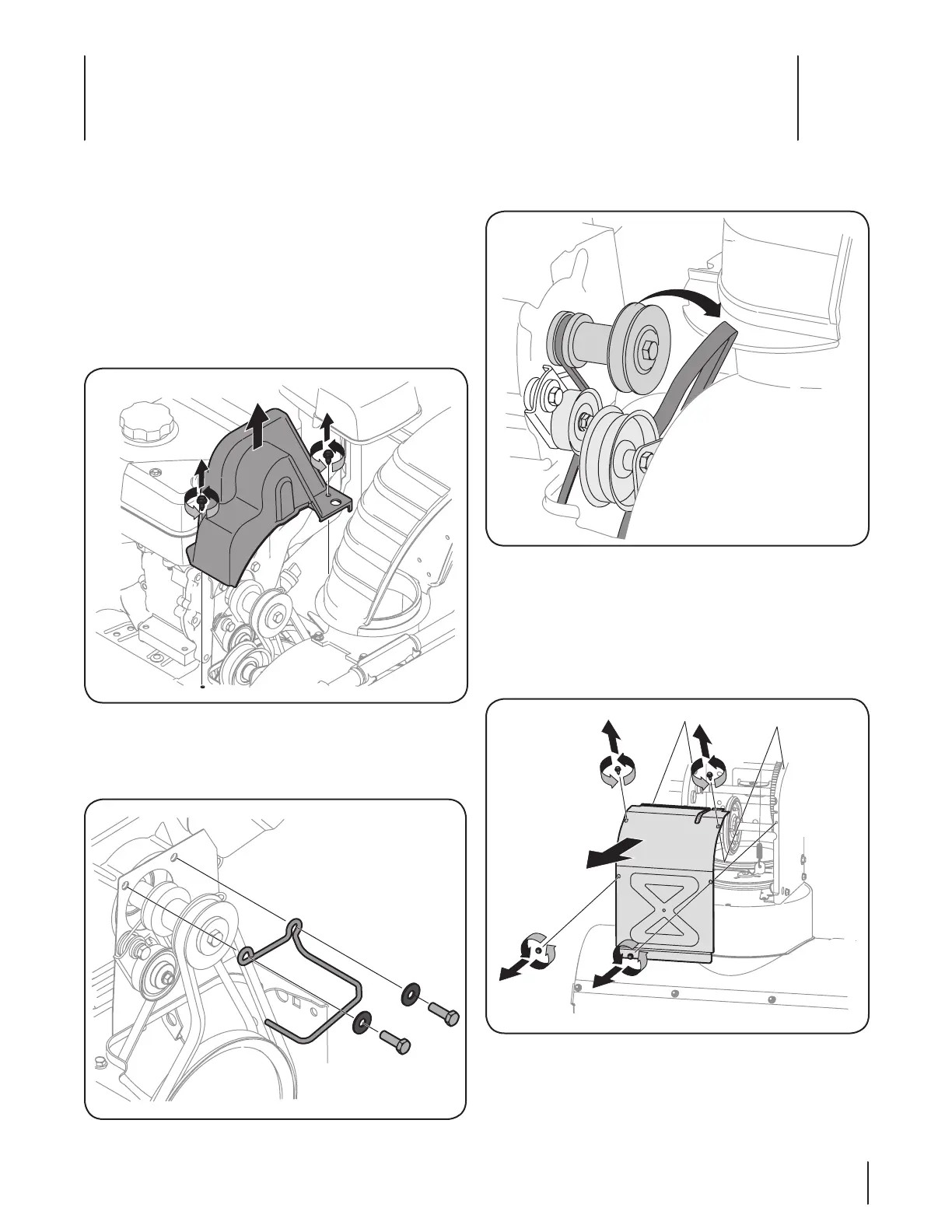 4. Saque la correa de la barrena de la polea del motor. Vea la