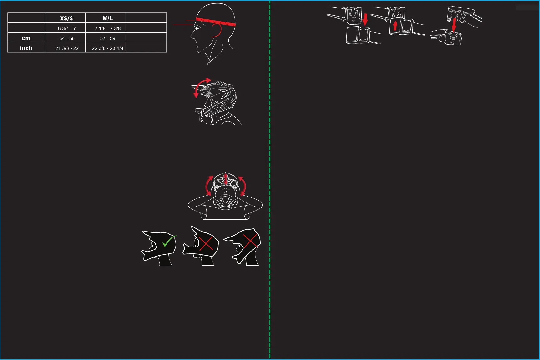 8. Wenn der Helm anfängt sich entweder nach vorne oder nach hinten zu lösen, verwenden Sie den Helm nicht.