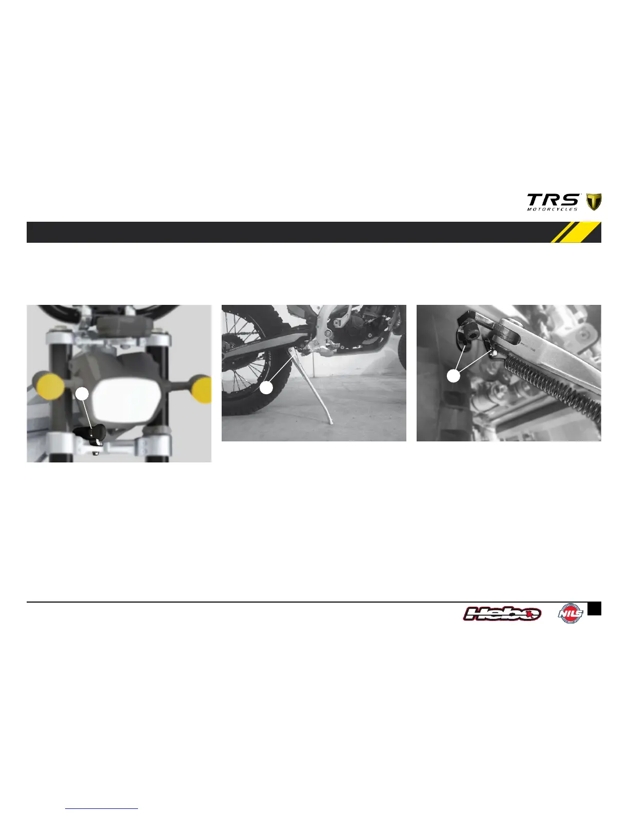 b) Side stand located on the right of the motorcycle c) Adjustment holes in the side stand