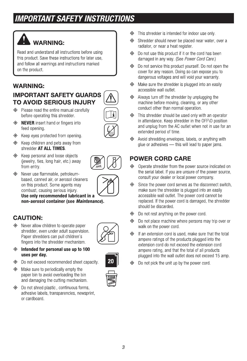 TRU RED TR-BMC20A - Important Safety Instructions; Safety Warnings and Precautions; Power Cord Care