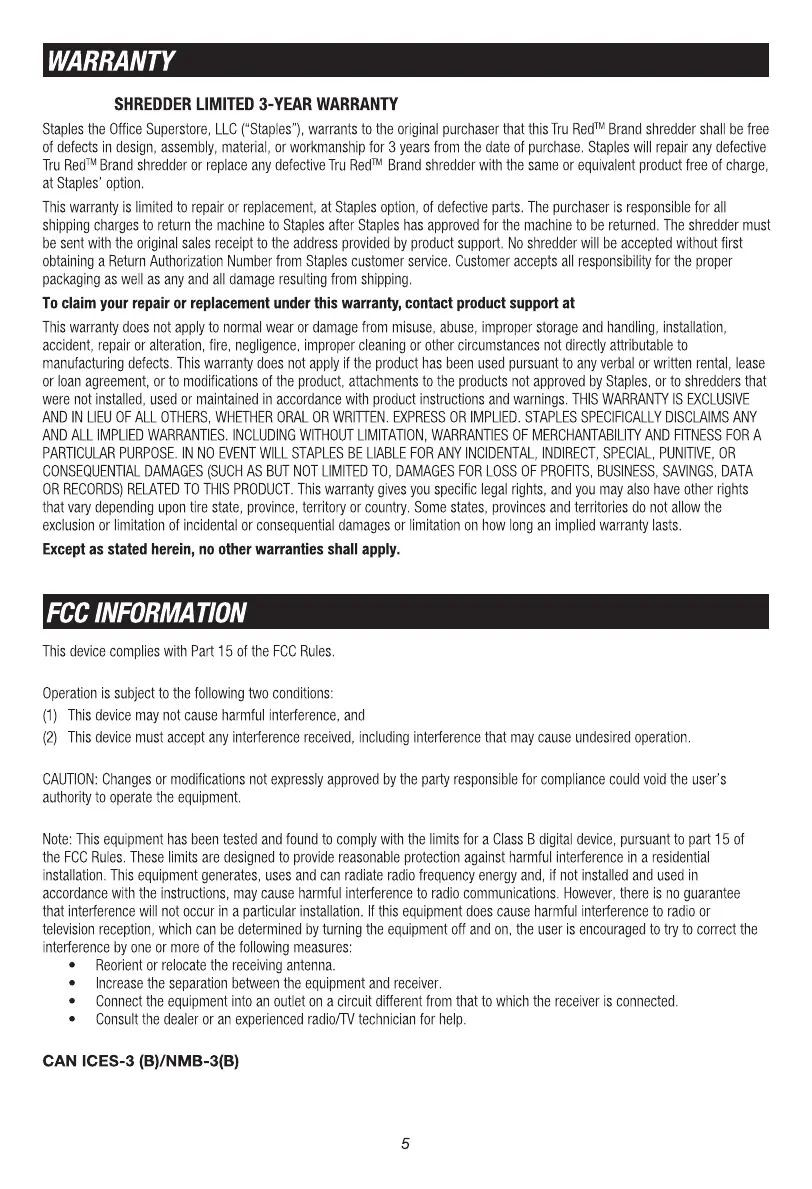TRU RED TR-BXC243A - Warranty Information; Limited 3-Year Warranty Details; FCC Compliance Information; Regulatory Compliance and User Guidance
