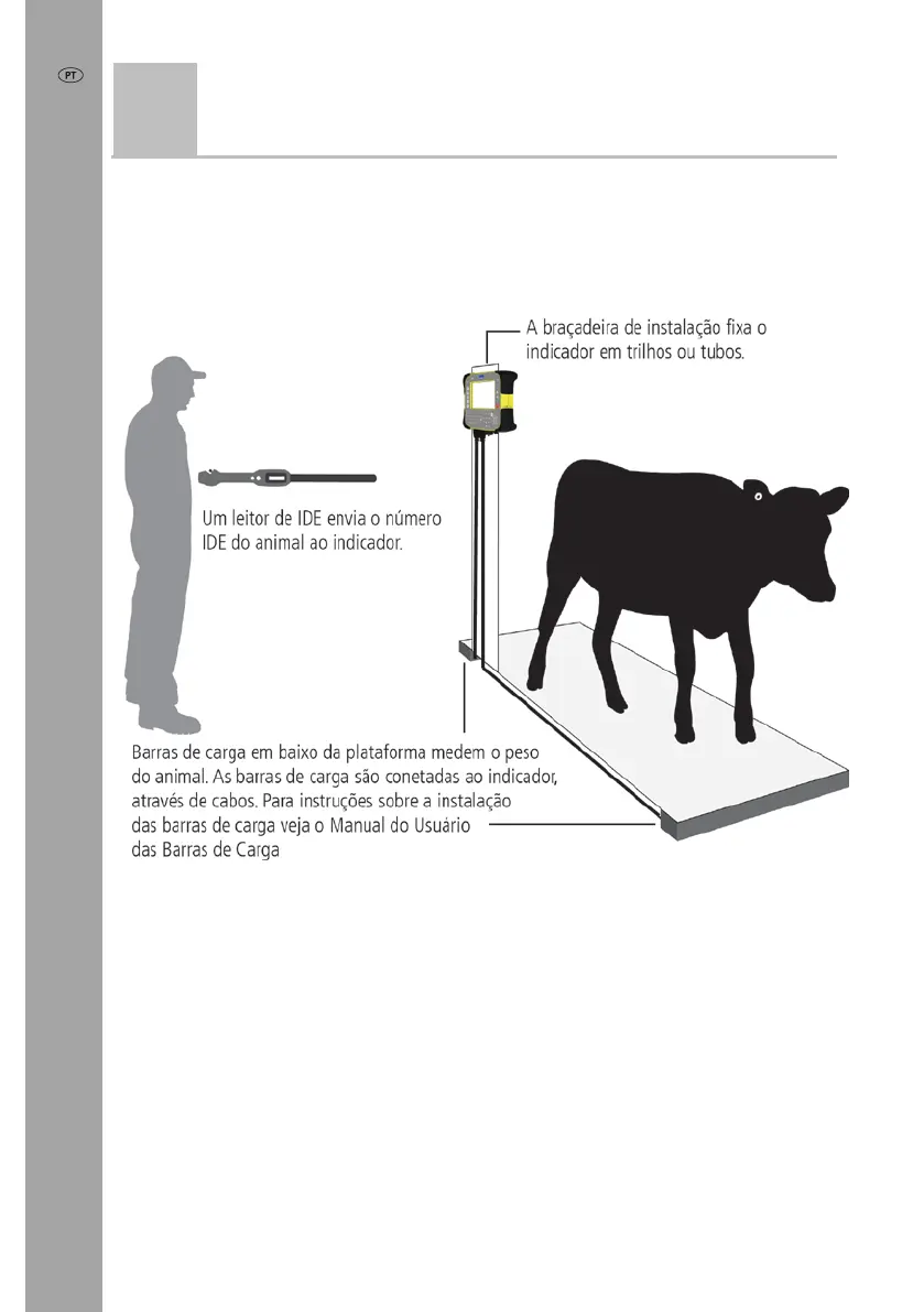 Antes de poder pesar animais, será necessário conectar o indicador a um par de