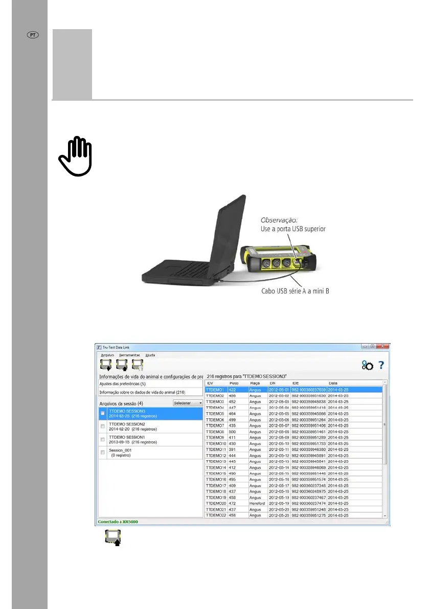 3 Quando o Data Link tiver estabelecido uma conexão com o indicador, todas as