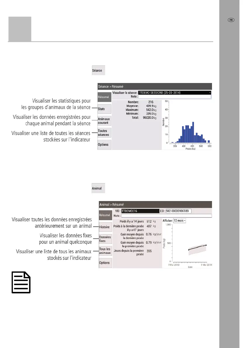 Vous pouvez visualiser les données recueillies pendant une séance sur l’écran