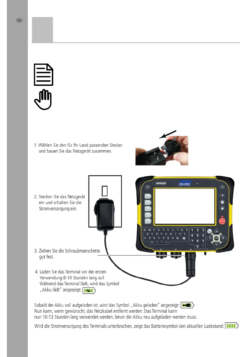 Verwenden Sie das Netzgerät, um den Akku des Terminals an das Stromnetz