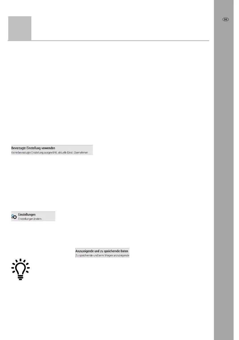 Bei Start einer neuen Wägung besteht die Möglichkeit, eine bevorzugte Einstellung