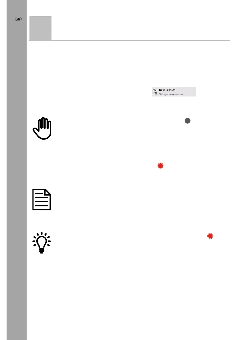 To start a new session, from the Home screen press