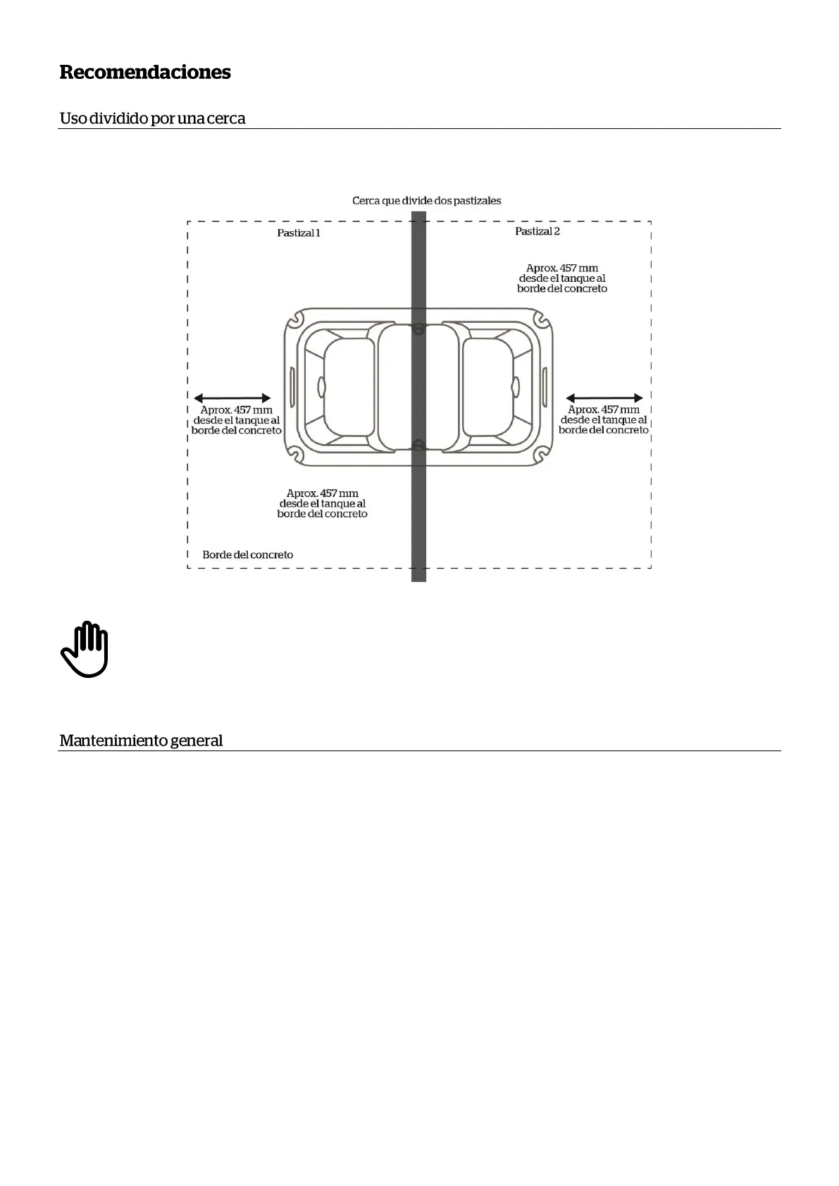 El WaterPro2 puede usarse para dividir dos pastizales o corrales con una cerca que separe el área de suministro de agua. Esto