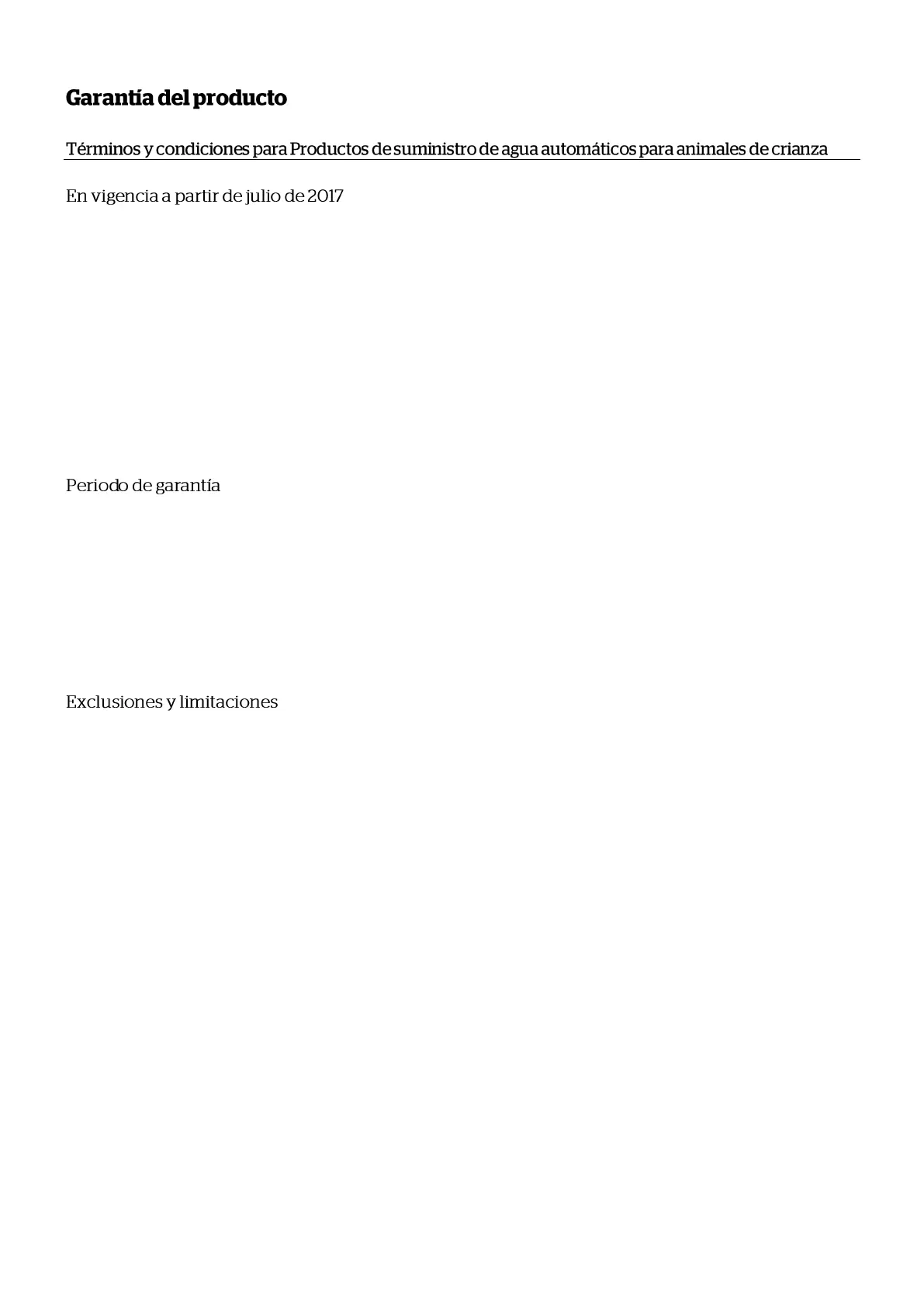 Las responsabilidades de garantía de Tru-Test, Inc. para Productos de suministro de agua automáticos para animales de crianza