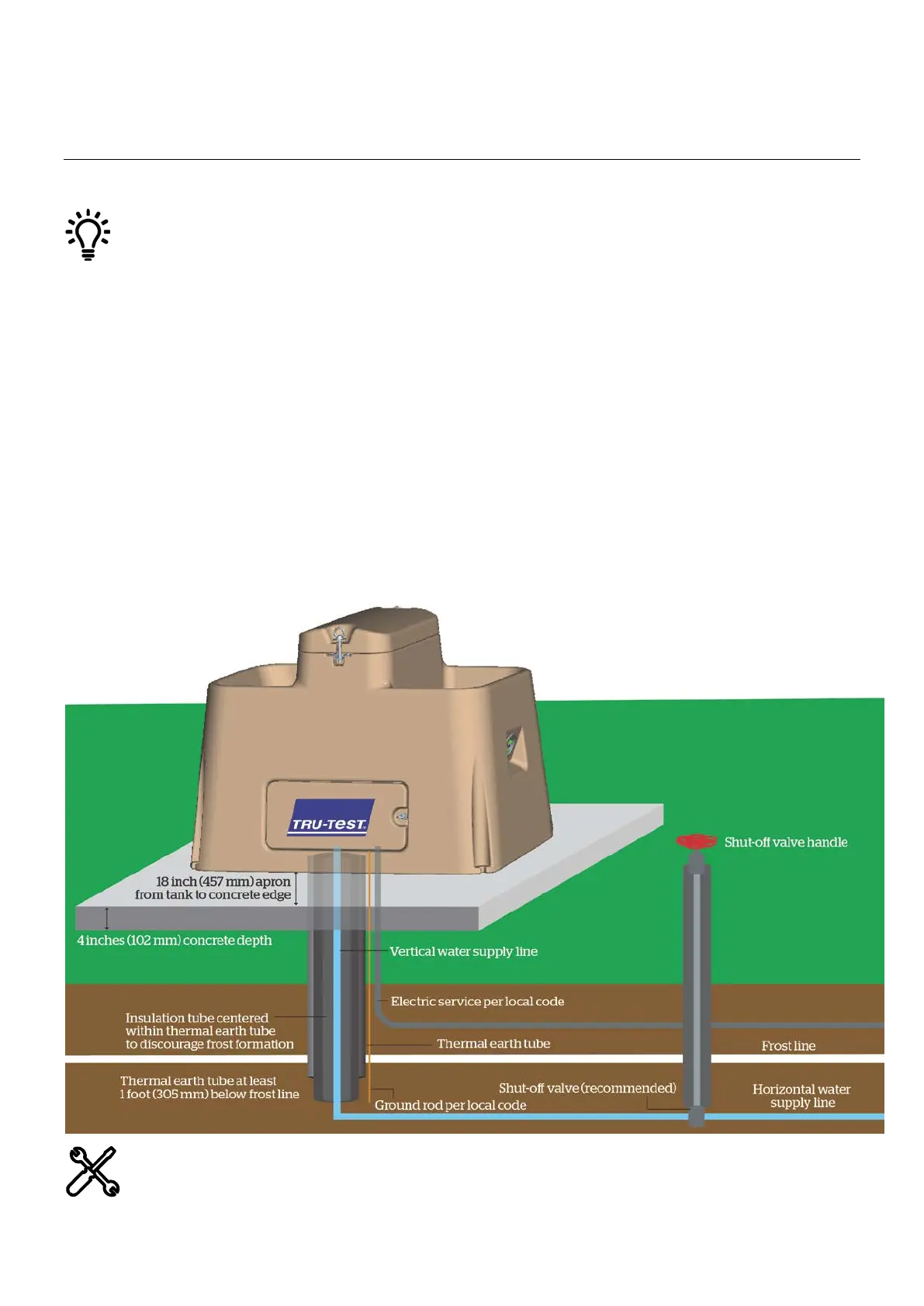 • The concrete slab should have a 4 inch (102 mm) by 18 inch (457 mm) apron from the tank to the concrete