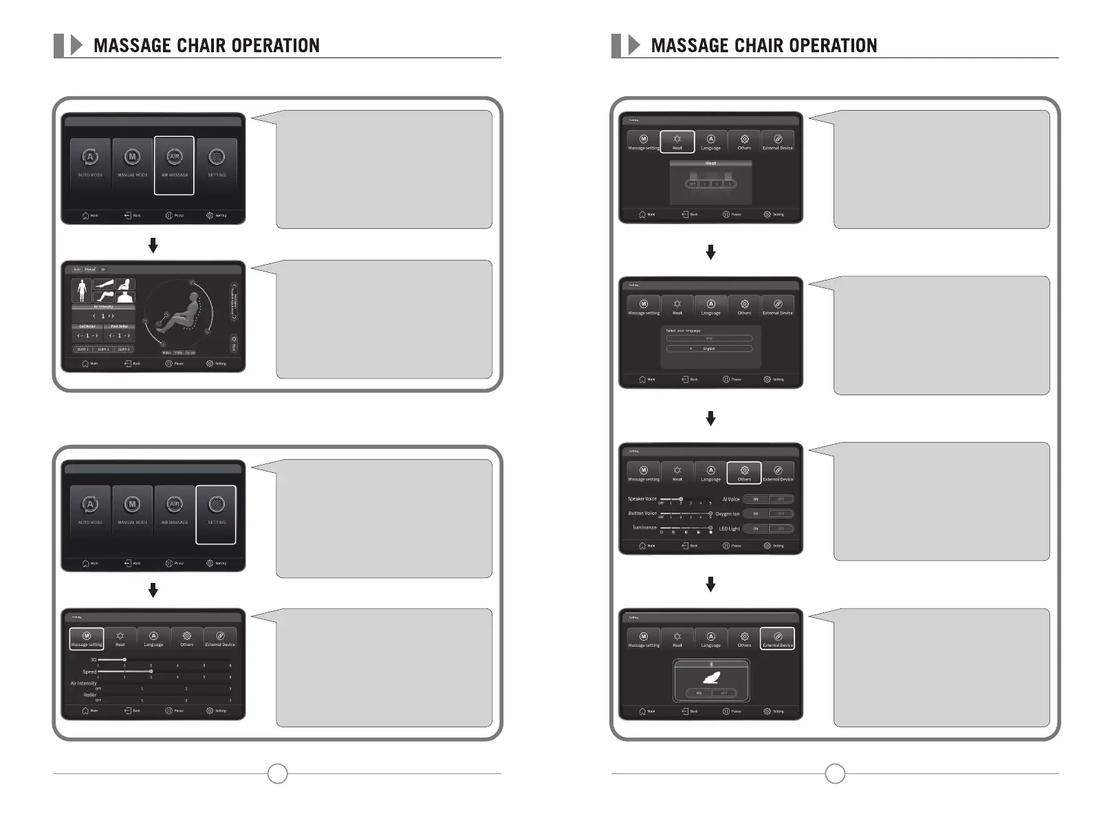 "Massage Settings" to adjust 3D, massage
