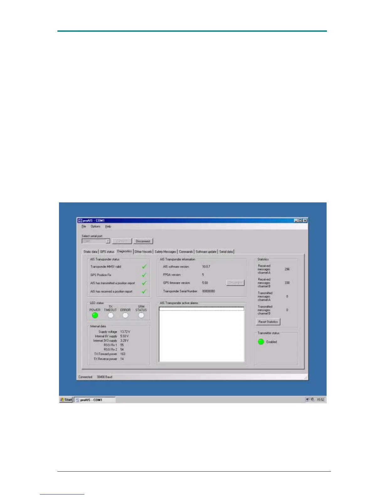 Figure 20 AIS-CTRX CARBONDiagnostics] field provides good information about the transponder's